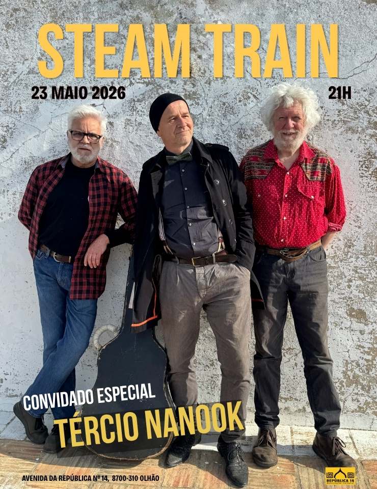 O trio Steam Train chega com uma abordagem fresca e original à música americana, fundindo a energia do rock and roll, as raízes do jazz e a alma da folk celta e do bluegrass.